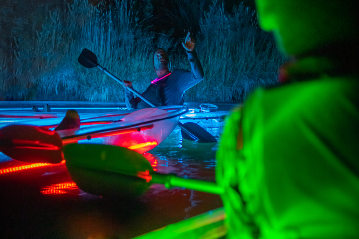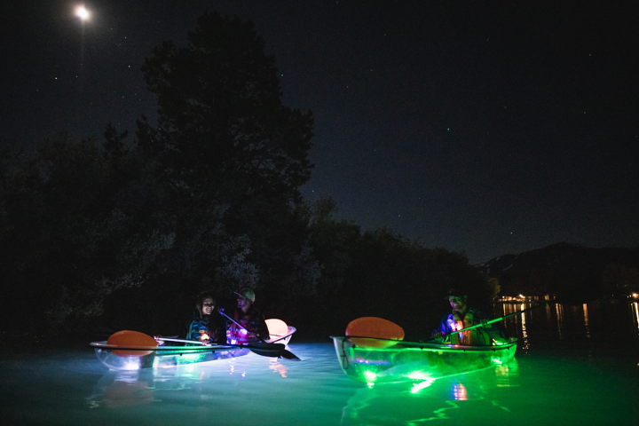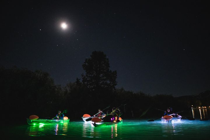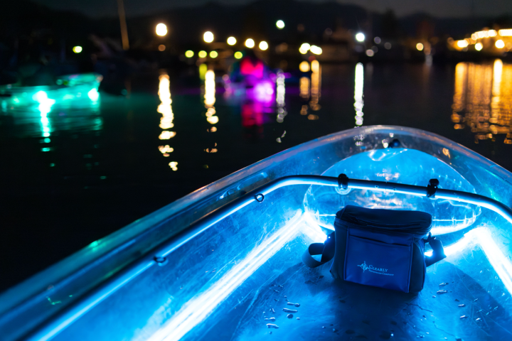 Paddle under the stars on this unique LED Clear Kayak Experience!