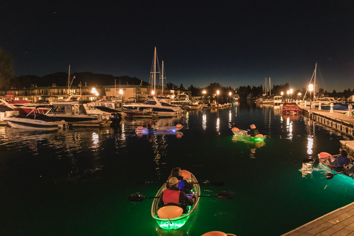 Paddle across the calm waters of Lake Tahoe at night in a glowing, see-through kayak on our LED Stargazing Tour. This relaxing 1.5-hour guided experience lets you enjoy the peaceful beauty of Lake Tahoe after dark. As the stars fill the sky above, your clear kayak lights up the water below, creating a magical view in every direction. You’ll see the outline of the Sierra Nevada mountains, listen to the sounds of nature, and maybe even spot nighttime wildlife. This tour is quiet, easy, and perfect for anyone looking for a unique way to enjoy the lake. Starting from our Tahoe Keys Marina shop in South Lake Tahoe, this unforgettable nighttime adventure is a must-do!